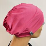 - Volumenmütze in pink mit breiten Bund und Raffung am Hinterkopf