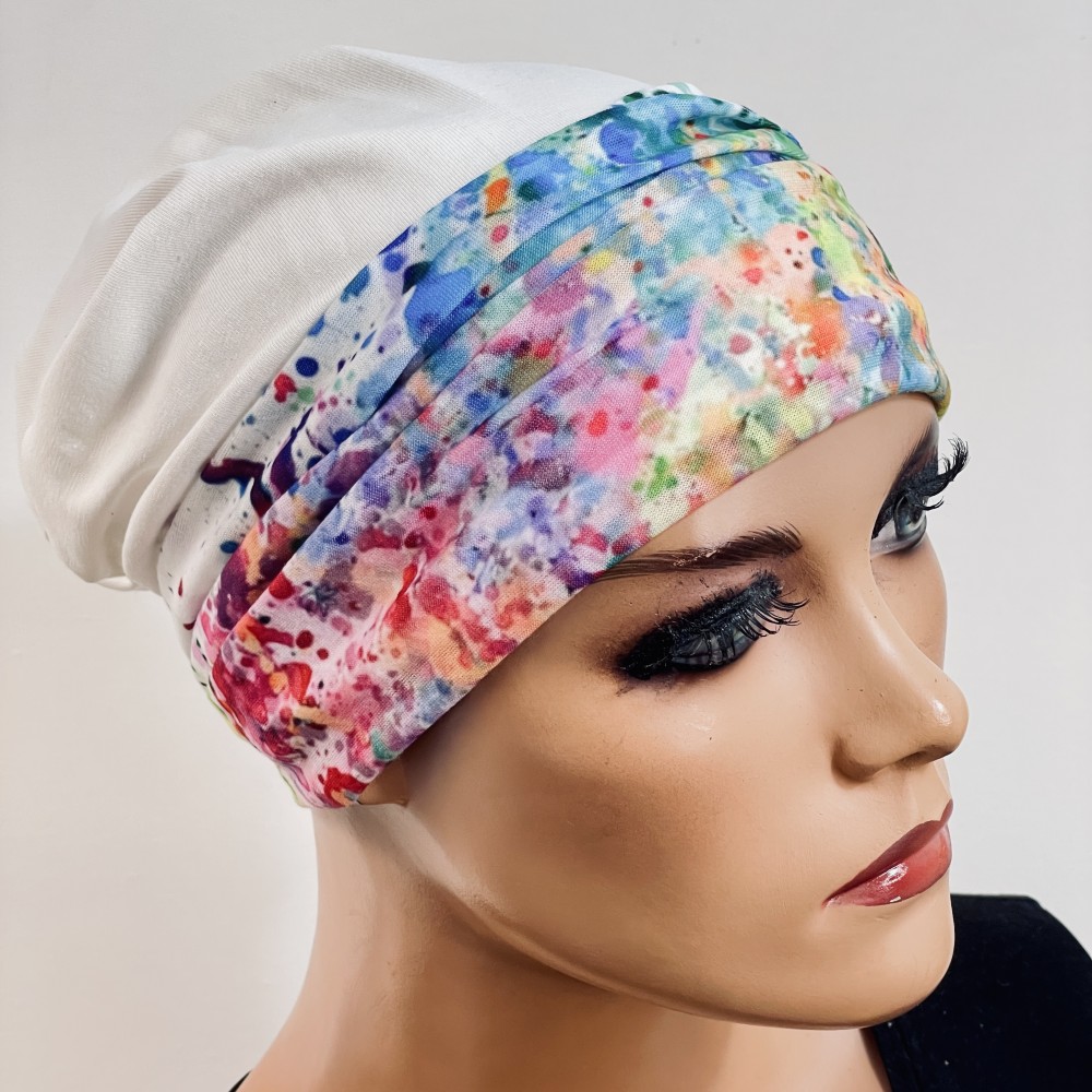 Mützenart: 2 tlg. Set Beanie in weiß+ buntes Band