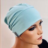 - Volumenmütze in aqua/türkis mit breiten Bund und Raffung am Hinterkopf